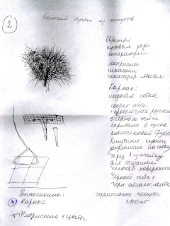 4. Хомуты зацепить на каркас сетки, цепляя каждый хомут через одну ячейку, выводя конец хомута вверх. Покрыть всю поверхность сетки хомутами.5. В пластиковую трубу налить горячего клея и вставить проволочную ручку.